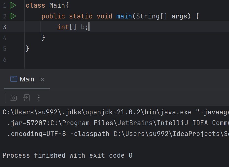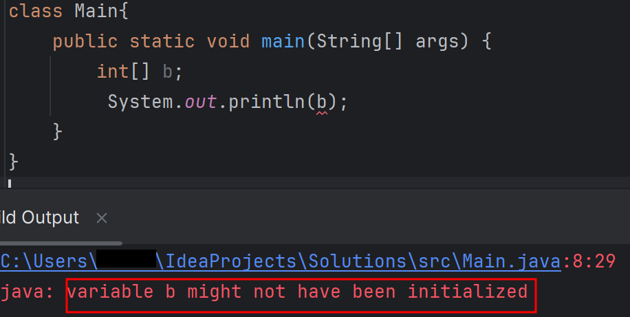 일단 여기서 컴파일 에러가 뜬 이유는 int[] b가 지역 변수로 선었되었기 때문이다.
