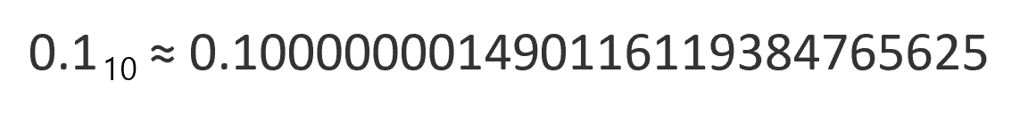 0.1을 IEEE 754 표준 단정도 부동소수점으로 표현하면 다음과 같은 값이 나온다(근사치임).