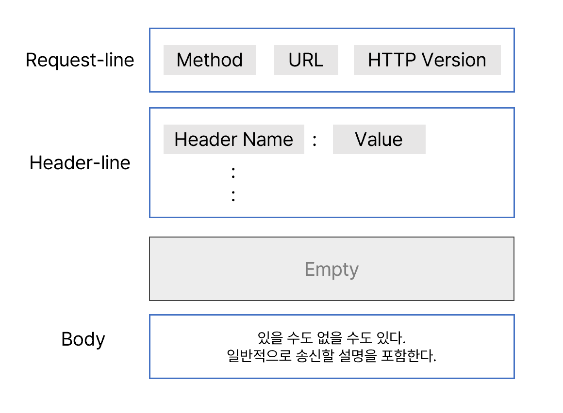 request- line은 Method, URL, HTTP version 3개의 필드로 구성된다.