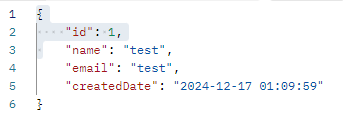 '회원 가입' 후 Response Body에 "id", "name", "email", "createdDate" 정보가 모두 출력되어야하는데,