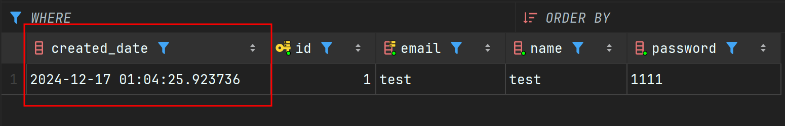 수정 후 "createdDate"에 시간이 정상적으로 입력된 것을 확인 할 수 있었다.