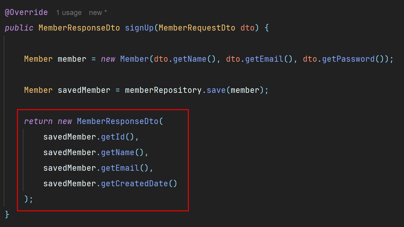 먼저, Service에서 구현한 signUp( )메서드를 살펴보았다.