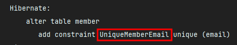 제약 조건의 이름은 "UniqueMemberEmail"로 정했다.