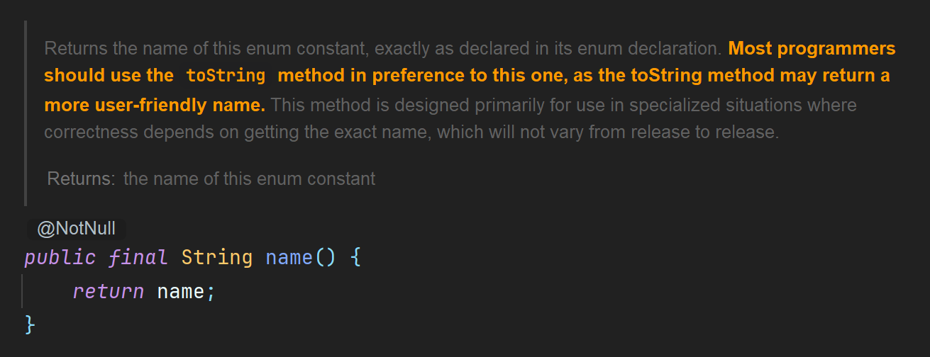 클릭해보니 .name()은 ENUM에 포함된 메서드라는 것을 확인할 수 있었다.
