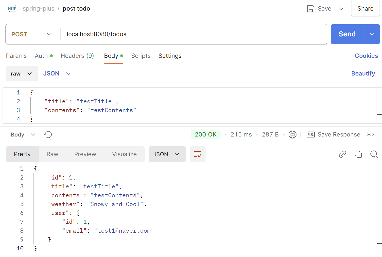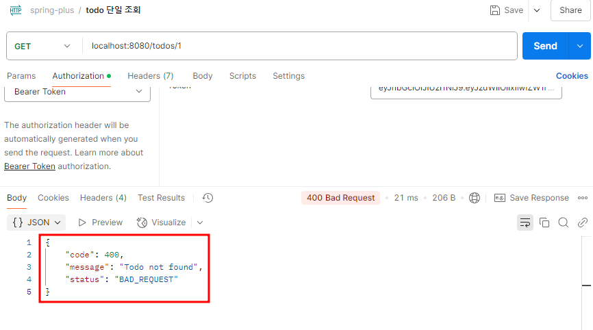 이때 의도적으로 아무런 일정도 조회되지 않도록 해보면 다음과 같이 BAD_REQUEST 상태가 반환된다.