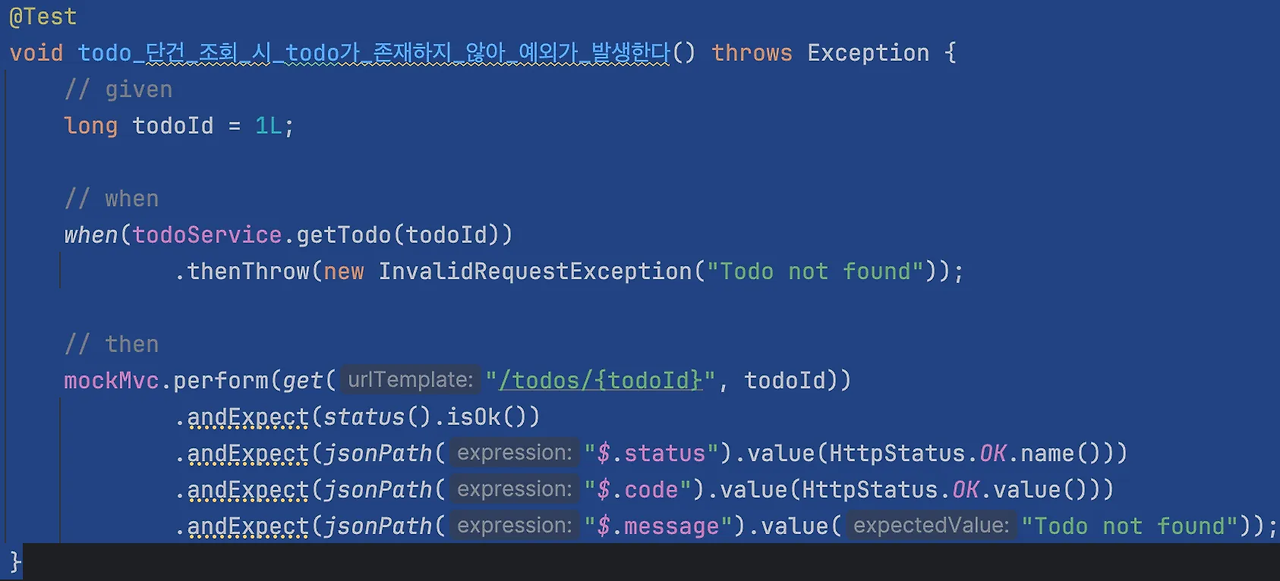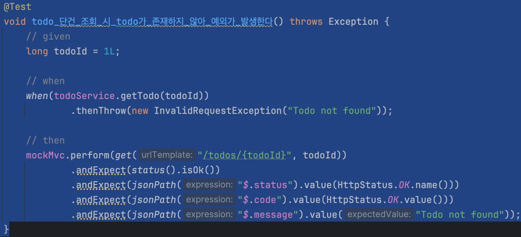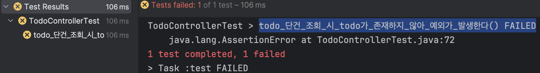 todo_단건_조회_시_todo가_존재하지_않아_예외가_발생한다() 테스트가 실패하고 있다.